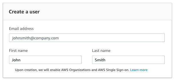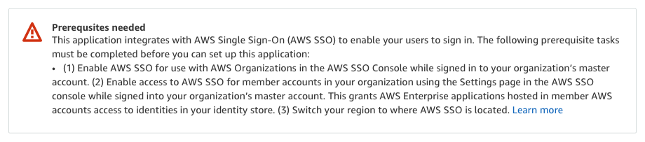 The experience needed to enable new users in a standalone AWS account to set up AWS SSO and underlying requirements such as AWS Organizations. In an account that was an AWS Organizations member account, there needed to be a method to check if the AWS account and AWS organization was configured correctly, and if not, display sensible error messages to enable the user to configure their account correctly.